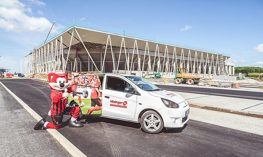 Seit einem guten Monat können aufmerksame Beobachter auf den Straßen der Region einen Pkw mit einem ganz besonderen Motiv entdecken. Denn SC-Premiumsponsor hilzinger hat auf einem seiner Firmenwägen der Verbindung mit dem Sport-Club ein kleines Denkmal gesetzt.