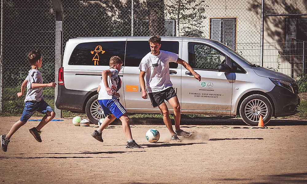 Nico Kritzinger: Unsere Stiftung bekam 2018 als Gewinn des DFB-Integrationspreises einen Mercedes-Van. Den wollten wir sinnvoll einsetzen und auf Bolzplätzen ein Sportangebot für Kinder und Jugendliche in die Wege leiten. Den letzten kick gab dann Corona: Als Reaktion auf die bewegungsarme Zeit im Frühjahr war uns eine unkomplizierte Möglichkeit zum Sporttreiben für die Kids wichtig.