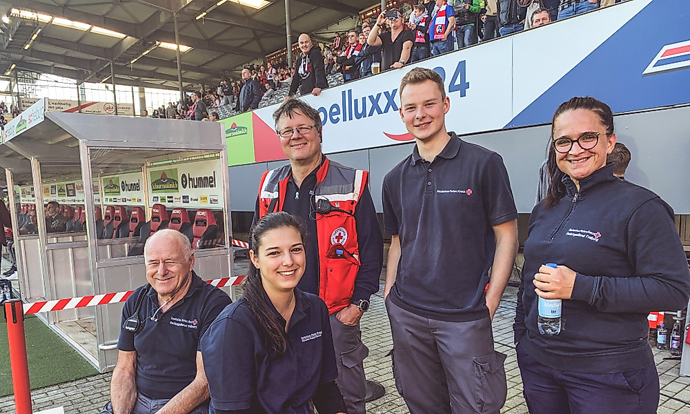 Jeder Fan hat sie bei einem SC-Heimspiel schon mal gesehen – am Spielfeldrand, im Stadionumlauf oder auf dem Stadiongelände. Die Sanitäter/innen vom Deutschen Roten Kreuz (DRK) helfen und haben ein offenes Ohr, wenn man sie braucht. Egal ob bei einem Spielfeldeinsatz, einem Schwindelanfall, einem unglücklichen Sturz oder auch, wenn das letzte Bier ausnahmsweise doch schlecht war: Verein und Fans sind froh, in Notsituationen eine/n Helfer/in/in mit rotem Kreuz an der Seite zu wissen.