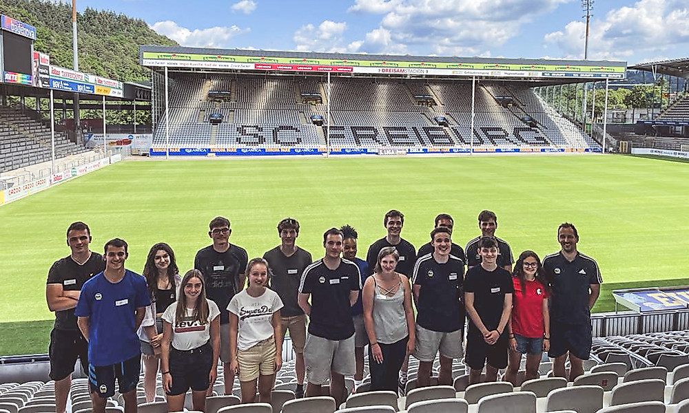 Das Gruppenfoto auf der Haupttribüne des Dreisamstadions durfte zum Abschluss nicht fehlen und wer anschließend noch Energie hatte, konnte auf dem Trainingsplatz kicken. Für die FSJler/-innen von ALBA Berlin folgte am Sonntag noch die Teilnahme am Netzwerktreffen der "Sport-Quartiere Freiburg".