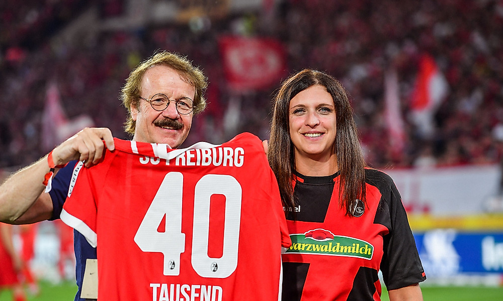 Nun hat sich diese Zahl also binnen drei Jahren verdoppelt. Im Vorfeld der Bundesligapartie des Sport-Club gegen den VfL Bochum ehrte SC-Präsident Eberhard Fugmann Sandra Ricigliano als Mitglied Nummer 40.000 und überreichte ihr ein Heimtrikot mit ebendieser Nummer.