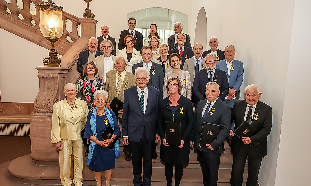 Insgesamt 23 verdiente Persönlichkeiten bekamen in diesem Jahr den Verdienstorden des Landes Baden-Württemberg überreicht. Die Zahl der Ordensträger ist auf insgesamt 1.000 lebende Personen begrenzt. Seit 1975 wurde der Landesorden insgesamt an 2.031 Personen verliehen. Eine Auszeichnung kann z. B. bei Bürgermeisterämtern, Landratsämtern oder unmittelbar beim Ministerpräsidenten angeregt werden.
