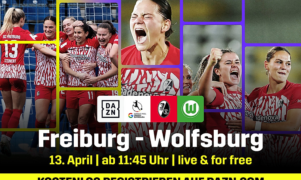 Lediglich eine kostenlose Registrierung auf www.dazn.com ist notwendig um das Spiel der SC-Frauen gegen den Tabellenzweiten der Google Pixel Frauenbundesliga gratis zu streamen. Anpfiff der Begegnung ist am Samstag um 12 Uhr, die Übertragung von DAZN startet um 11:45 Uhr.