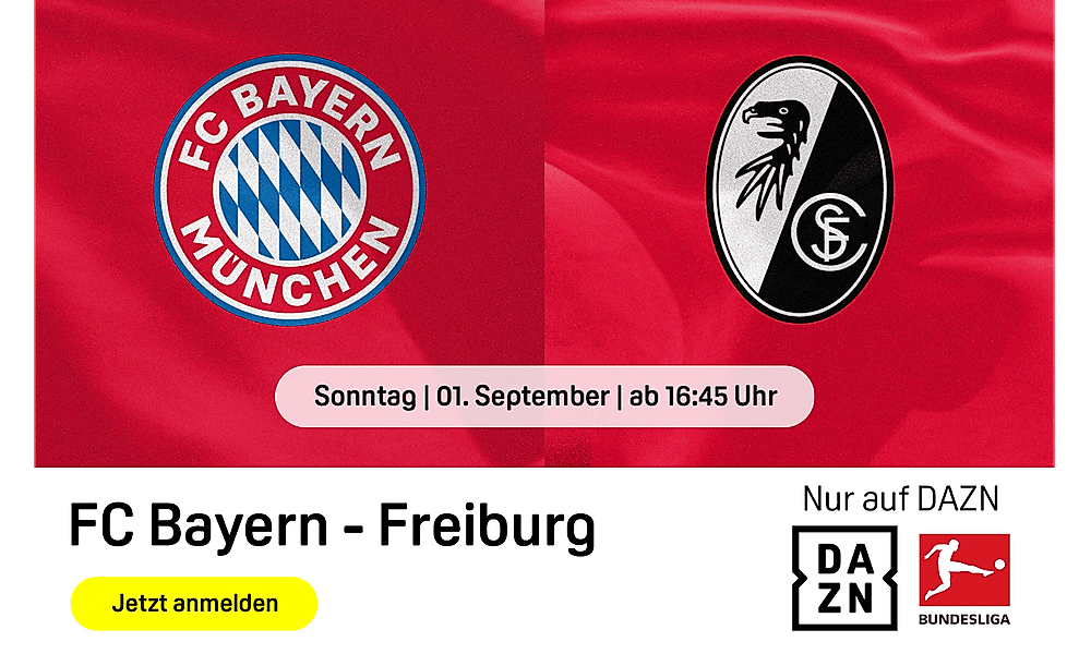 Los geht die Übertragung beim Streamingdienst DAZN ab 16:45 Uhr, moderiert wird die Übertragung von Frederik Harder. Kommentator Lukas Schönmüller und Experte Michael Ballack begleiten das Live-Spiel aus der Allianz Arena zum Anpfiff um 17:30 Uhr.