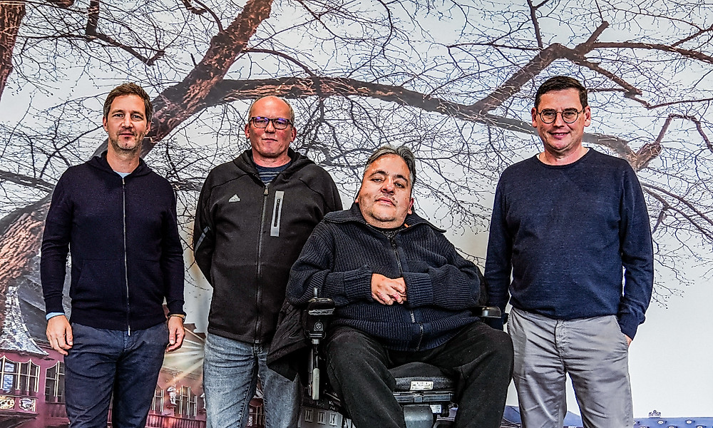 Foto (SC Freiburg): Jochen Saier (Vorstand SC Freiburg), Jürgen Zier (2. Vorsitzender SV Blau-Weiss Wiehre), Ismael Hares (1. Vorsitzender SV Blau-Weiss Wiehre), Oliver Leki (Vorstand SC Freiburg)