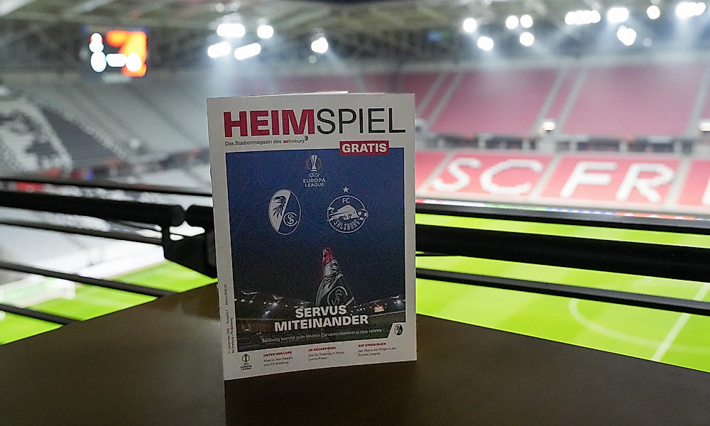 Auch in diesem Europa-League-Jahr stellen wir euch die Sonderausgaben unseres Stadionmagazins anlässlich der internationalen Heimspieltage gratis zur Verfügung. Zum Spiel gegen den FC Salzburg nimmt Heimspiel die Gäste aus Österreich genauer unter die Lupe: die Geschichte des Vereins, die aktuelle sportliche Entwicklung, die höchsten Siege und Niederlagen im Europapokal, den Kader. Außerdem im Heft: Die Auswärtspartien in Nizza und Pilsen im Replay, die schönsten Erinnerungsfotos fußballreisender SC-Fans, eine Statistikseite mit allem zum Modus der Europa League und ein Comic von Guido Schröter.