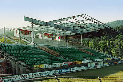 Im Dezember 1992 ließ Stocker also das Buschwerk an der Strandbadseite entfernen und das Gelände einebnen. Wenig später erteilte die Stadt die Baugenehmigung für die Errichtung eines Oberrangs auf der Gegengerade. Dadurch erhöhte sich die Stadionkapazität um etwa 1.600 Plätze. Auch die im Unterrang verbleibenden Stehplatzfans waren fortan durch das neu angebrachte Dach vor der Witterung geschützt. Die Besucher der um weitere drei Stufen erweiterten Nordtribüne dagegen blieben Wind und Wetter weiterhin ausgesetzt.