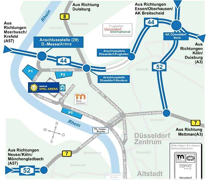 - Von der A44 kommend bitte die Ausfahrt Stockum für Gäste-Fans nutzen. Ab dort der Beschilderung folgen zum Parkplatz P2.