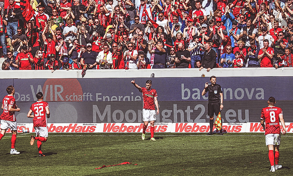 "...dass die Fans uns maximal unterstützen. Wir brauchen das jetzt." Christian Streichs Worte vor der Partie gegen Bochum an die Zuschauer waren deutlich. Und die SC-Anhänger im Europa-Park Stadion setzten den Appell um. Schon vor dem Anpfiff mit einer Choreographie, die sich über die Süd- und Osttribüne ausbreitete, fand die Unterstützung während dem Spiel ihre Fortsetzung in lautstarkem und ständigem Gesang. "Wir haben ein tolles Spiel gemacht und was uns heute natürlich wahnsinnig geholfen hat, war das Publikum. Die Südtribüne hat gewackelt, hat alles mitgerissen. Es war heute ein richtiger Fußballtempel", freute sich Streich nach dem Duell mit dem VfL.