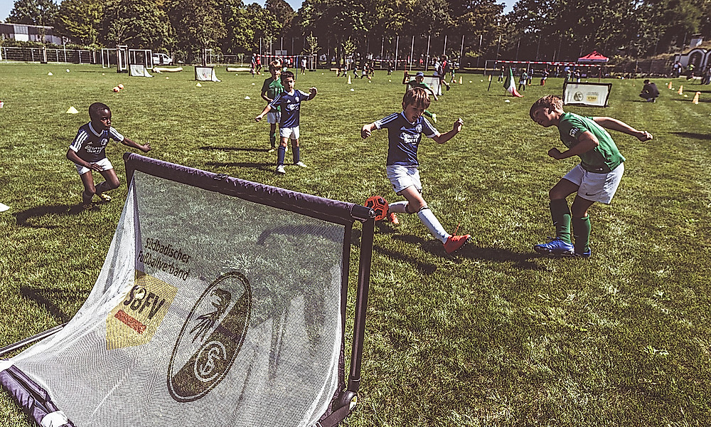 Erstmal auf Verständnis: Zusätzlich zum Job noch Kindertrainer zu sein, ist nicht ohne und verdient Respekt. Auf dieser Basis müssen wir das Wesentliche, worauf es im Kinderfußball ankommt, immer wieder anschaulich rüberbringen: Warum brauchen Kinder kleine Spielformen mit ständigen Ballaktionen? Weil sie im Lernalter sind, in dem ihr Gehirn Bewegungsabläufe so abspeichert, dass sie in Fleisch und Blut übergehen. Hat ein Kind kaum Ballkontakte – wie soll es Spaß haben und sich verbessern? Zudem sage ich oft: Macht’s euch nicht unnötig schwer! Geht auf die Kinderfußball-Website vom Südbadischem Fußballverband und dem SC (sbfv.de/kinderfussball; d.Red.), übernehmt die Spielformen, die da erläutert sind, und ihr werdet sehen, wie gut sie funktionieren.