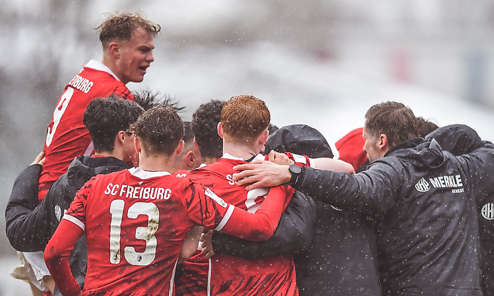 Die U19-Junioren haben in der Bundesliga einen wichtigen Sieg gefeiert. Beim 4:1-Erfolg über Heidenheim trafen Philip Fahrner (66.), Robert Wagner (83.), Amnay Moutassime (89.) und Daniel Au Yeong (90.+1) für den SC. Nach anfänglicher Nervosität und einem frühen Gegentreffer nach zwölf Minuten, fand die Mannschaft von Trainer Federico Valente in den zweiten 45 Minuten besser in die Partie und es gelang ihr, das Spiel noch zu drehen. Das Duell im Möslestadion nahm an Fahrt auf, Heidenheim blieb auch gefährlich, aber vor dem Tor bewies sich der Sport-Club als effektiver. „Vielleicht war das Ergebniss zum Schluss ein wenig zu hoch“, sagte Valente. „Aber wie die Jungs das in der zweiten Halbzeit gemacht haben, war sehr gut.“ Mit dem Sieg ist der SC nun punktgleich mit Heidenheim (beide 25) und liegt auf dem zehnten Platz. Hier gibt es den ausführlichen Spielbericht zum Sieg.