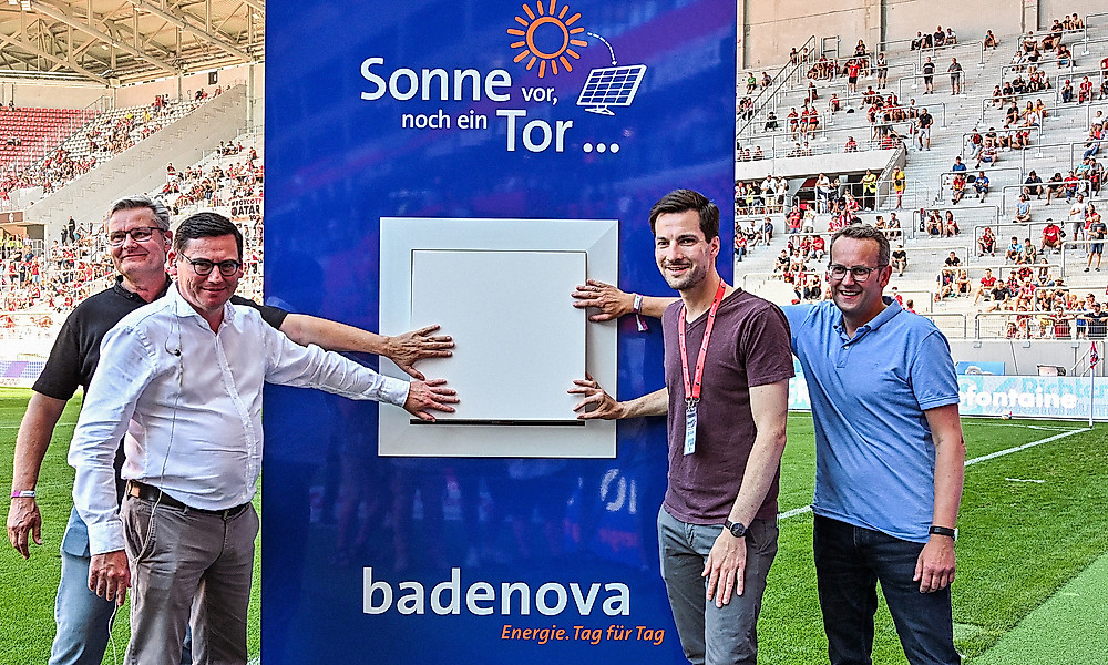Mit dem gemeinsamen Betätigen eines überdimensionalen Stromschalters haben der SC Freiburg, die Stadt Freiburg und badenova das Solarkraftwerk auf dem Dach des Europa-Park Stadions eingeweiht. Die 2,4-Mega-Watt-Anlage gilt als eines der weltweit größten Solardächer auf einem Fußballstadion.