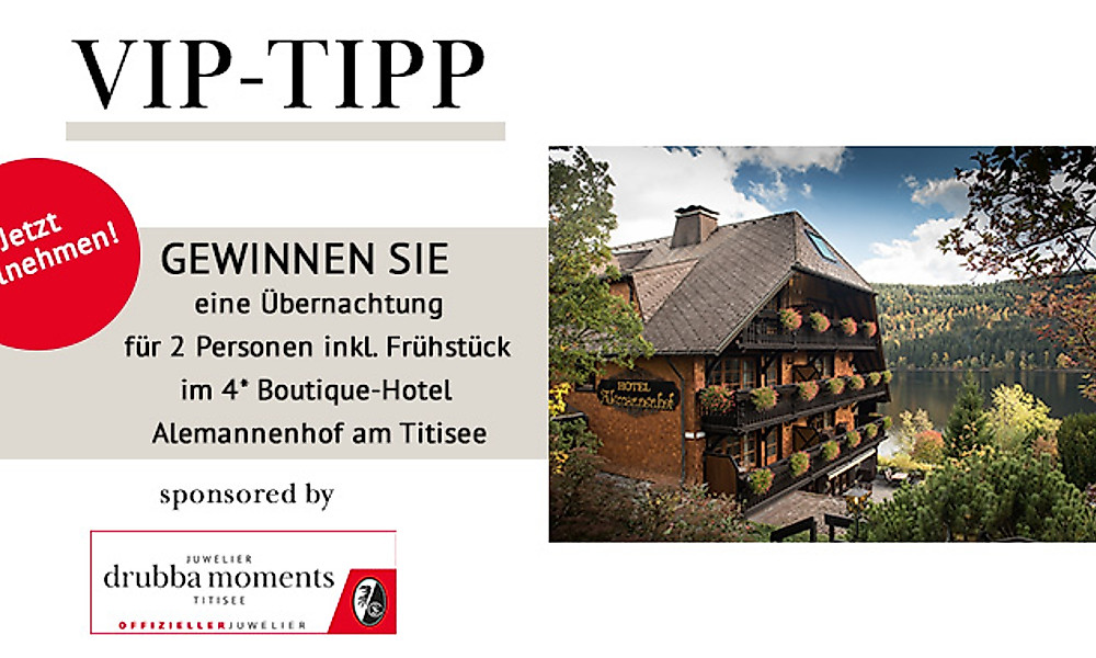 Beim heutigen Gewinnspiel erwartet Sie ein Gutschein für eine Übernachtung für zwei Personen inkl. Frühstück im 4-Sterne Boutique-Hotel Alemannenhof. Das Hotel liegt in Alleinlage direkt am Ufer des Titisees, umgeben von den sanften Wogen des Schwarzwaldes. Freuen Sie sich auf einen Aufenthalt, in dem Natur, Genuss und Anspruch zu einem perfekten Rückzugsort verschmelzen.