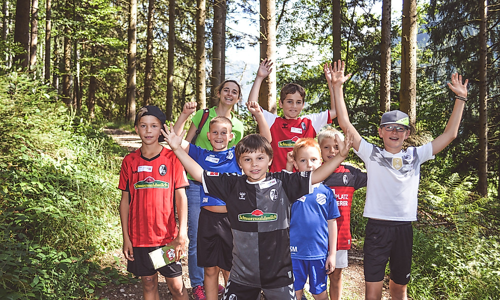 40 Mitglieder des Füchsleclubs und der SF Oberried im Alter von sechs bis zwölf Jahren fanden sich auf dem Sportplatz hinter dem alten St. Wilhelmer Schulhaus ein und wurden rasch in die Teams aufgeteilt, mit denen sie anschließend rätseln und kicken sollten. Gemeinsam mit Vertretern des Biosphärengebiets Schwarzwald und des Sport-Club machten sich die nach SC-Spielern benannten Teams anschließend auf den Weg über Teile des Wildnis-Erlebnispfads. Statt der fünf Kilometer und 14 interaktiven Stationen, über die sich die Route durch den „Urwald von morgen“ normalerweise erstreckt, galt es für die Nachwuchskicker und -kickerinnen zunächst an fünf Stationen Rätsel zu lösen.