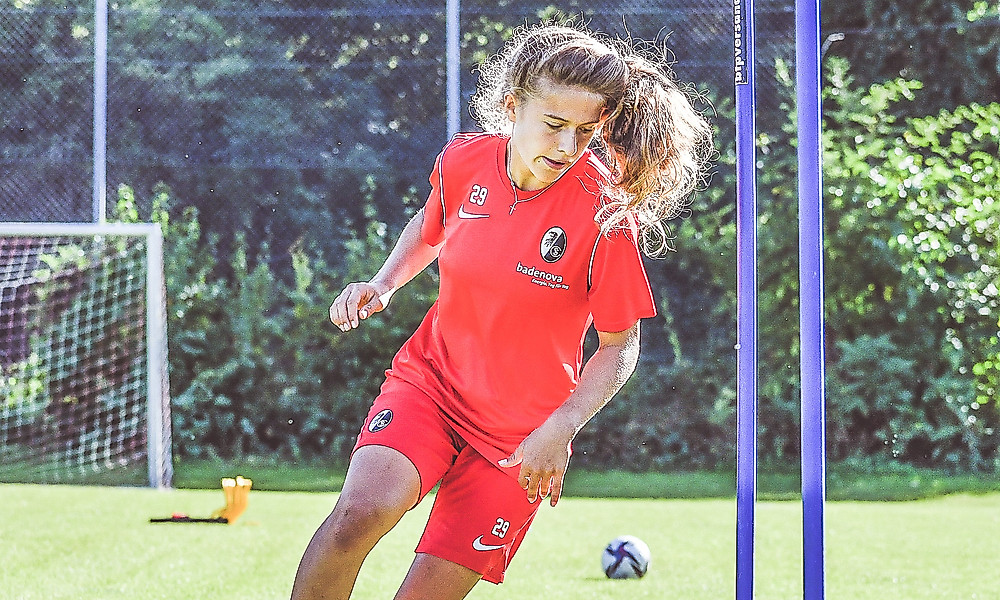 Nia Szenk rückte in dieser Saison erstmals in den Profi-Kader der Bundesliga-Frauen auf. Szenk spielt seit 2019 für den Sport-Club, durchlief zunächst die Juniorinnen-Teams. Bislang kann die 17-Jährige fünf Pflichtspiel-Einsätze für sich verbuchen.