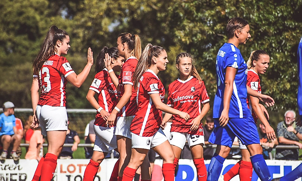 Die Bundesliga-Mannschaft der SC-Frauen gewinnt bei Germania Ebing souverän mit 10:0. Für den Sport-Club trafen Svenja Fölmli (4.), Janina Minge (14.), Riola Xhemaili (30.), Hasret Kayikci (49./58./60./66.), Marie Müller (63./90.) und Jana Vojteková (85.).