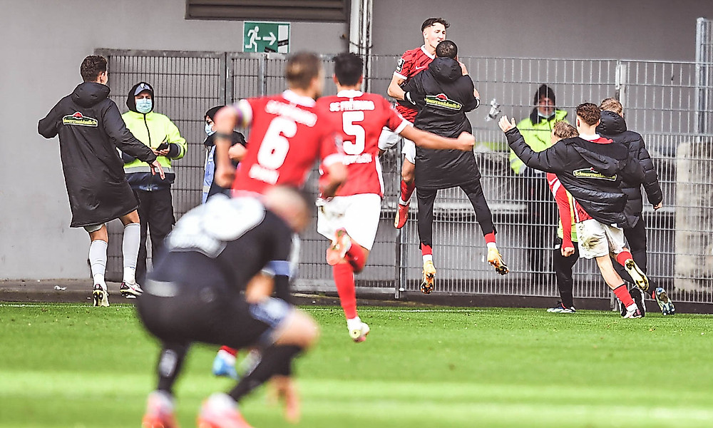 Die letzte Aktion der Partie war zugleich die spielentscheidende. Auch weil SC-Torwart Noah Atubolu zuvor in der zweiten Halbzeit einen Strafstoß von Orhan Ademi gehalten hatte. „Das war natürlich am Ende brutal, aber ich finde trotzdem, dass wir nicht unverdient als Sieger aus dem Spiel herausgehen“, sagte Trainer Thomas Stamm nach spannenden Schlussminuten im Dreisamstadion. „Wir sind froh, die nächsten drei Punkte mitnehmen zu können. Wir wissen wie hart es ist für uns, in der 3. Liga die Spiele zu bestehen. Ich bin mit der Art und Weise wie die Mannschaft aufgetreten ist sehr zufrieden.“