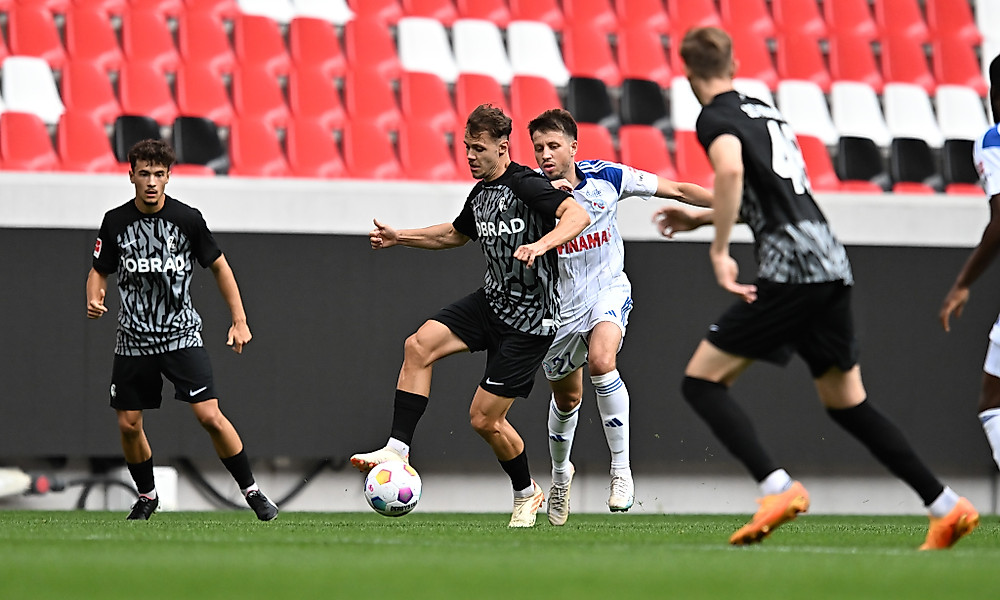 Both teams agreed to play two games of 90 minutes so that all the players could spend time on the pitch. The seven U23 players who took part in the training camp in Schruns also appeared. Six of them started the first friendly, as did Nicolas Höfler, who will miss the first Bundesliga matchday of the 2023/24 season through suspension, as well as Yannik Keitel, Kenneth Schmidt and Florian Müller. Jordy Makengo missed both friendlies having fractured his cheek bone during an unfortunate clash of heads during the final training session in Schruns, which will require an operation. Christian Günter, Roland Sallai and Ristu Doan were also absent.