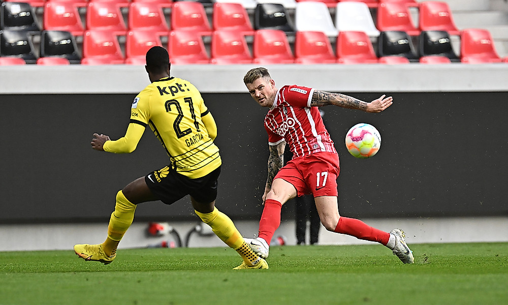 The home team improved during the next 15 minutes. Lucas Höler had a dangerous shot deflected for a corner (42’). The resulting set-piece came to Lukas Kübler via Höler and his low shot found the target for the equaliser (43’). Yannick Engelhardt and Nils Petersen both had opportunities to give SC the lead before the half-time break.