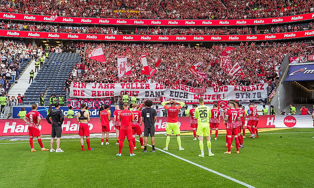 Despite defeat, the fantastic away end atmosphere did not dampen down after full-time. The players received huge amounts of well-earned praise for their performance this season, in the form of loud chants. SC Freiburg finished the 2022/23 season in fifth place, and will once again take part in the Group Stage of the UEFA Europpa League next season.