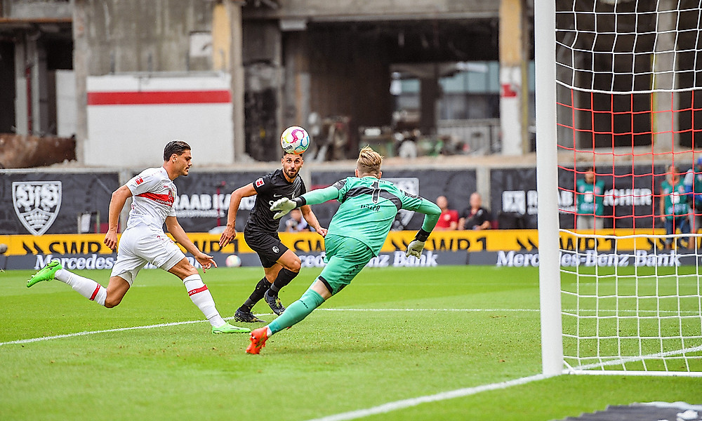 After the restart, Flekken was back among the action quickly. A chipped ball down the line from Waldemar Anton had played VfB’s Borna Sosa clean through and he was bearing down on goal – the Dutchman denied his opponent in a one-on-one (47’). Freiburg went straight up the other end and fashioned a shot through Doan, whose attempt was dealt with easily by the home goalkeeper.