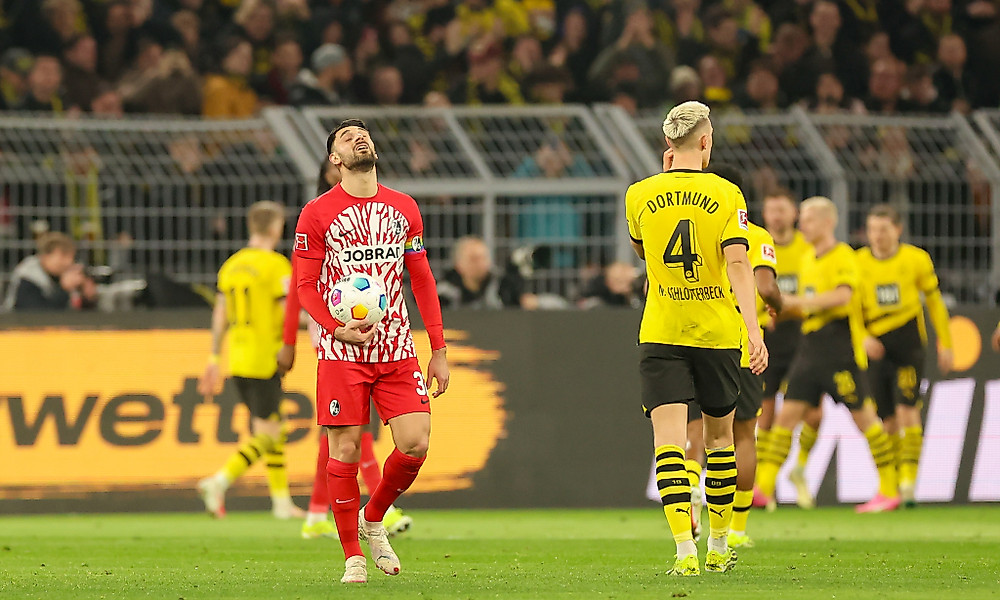 SC played with commitment, but had hardly any dangerous shots on goal. Substitute Doan shot from the edge of the box, but Kobel was in position to save. Dortmund had the chance to pick up a fourth in the closing stages, but Jadon Sancho fired straight at Atubolu. Vincenzo Grifo gave a brief summary of the game: “You have to be very efficient in Dortmund, which we didn’t manage.” His coach explained added, “The first half was ok, but Dortmund were then also simply too good for us. We didn’t play at our best. There were phases where it wasn’t so bad. In the end, though, we went without any chances. We also often found ourselves in dangerous situations, but the final pass was often missing.”