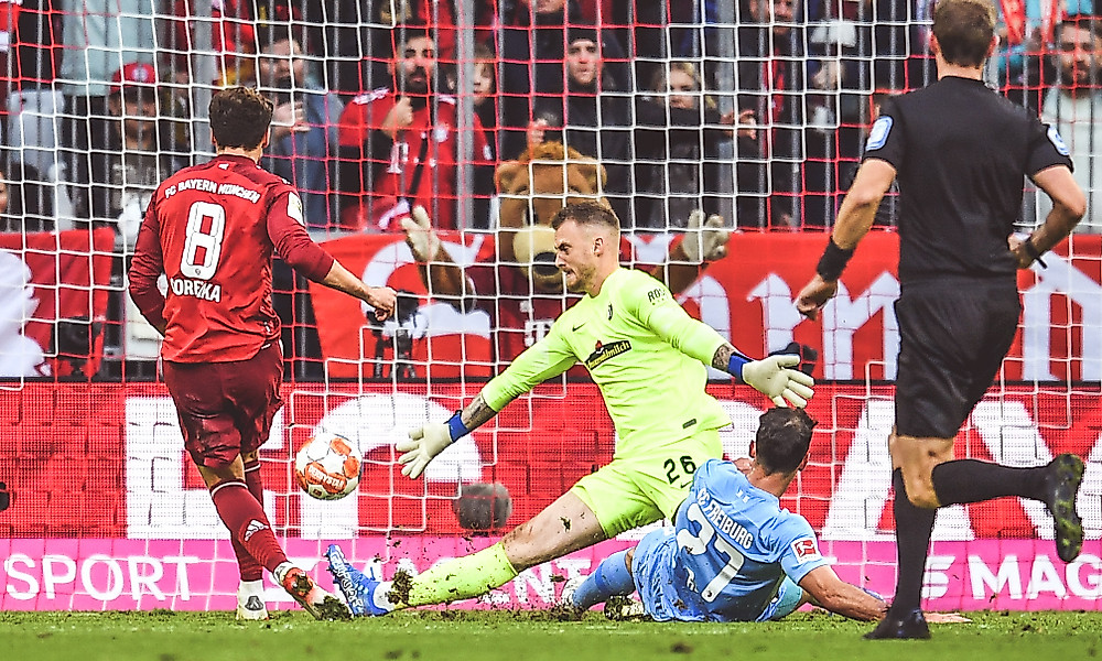 It wasn’t long before danger threatened Mark Flekken’s goal, however. After a chipped ball in by Leroy Sané, the ball landed at the feet of Niklas Süle 12 yards from goal, but his shot on the turn was unable to beat the Freiburg Keeper. Kingsley Coman’s strike two minutes later had the same result (4’, 6’).