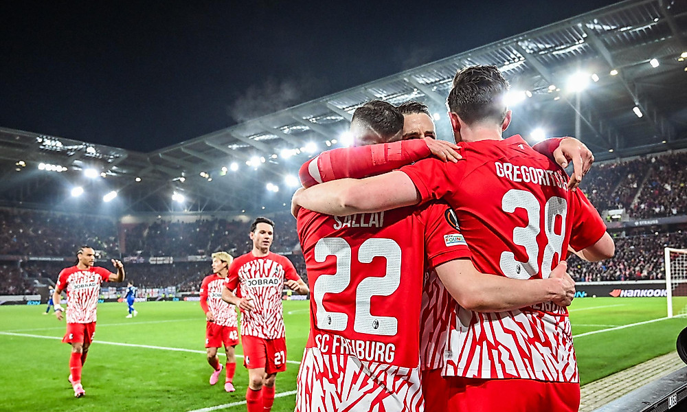 Le duel - le troisième de la saison entre les deux équipes qui s'étaient déjà rencontrées en phase de groupes - a débuté par un moment de frissons lorsque les supporters ont entonné « Steht auf für den SCF » (debout pour le SCF) et que l’ensemble du public a participé au chant. Et le SC, qui a commencé avec le même XI de départ que contre le Bayern Munich, s’est rapidement procuré sa première bonne occasion de but. Depuis le côté droit, le ballon de Vincenzo Grifo arrivait dans la zone des cinq mètres où Roland Sallai était prêt à le récupérer mais était bloqué au dernier moment.